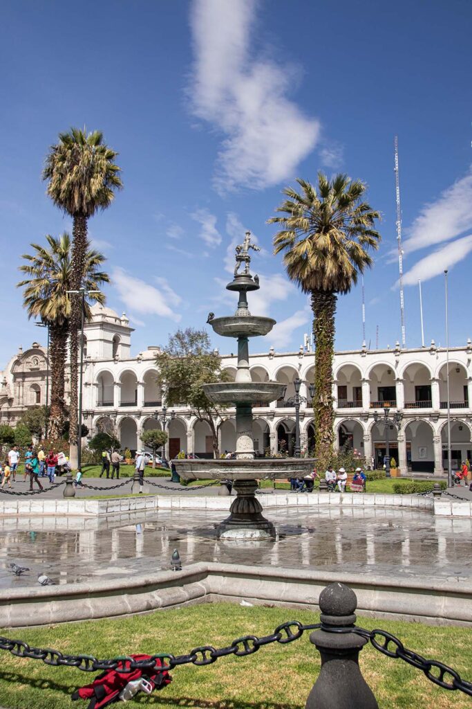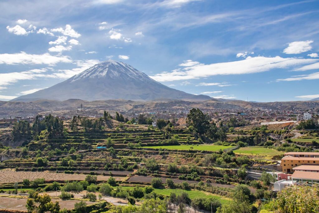 Arequipa is a Spanish colonial city at the base of several volcanoes, including El Misti.